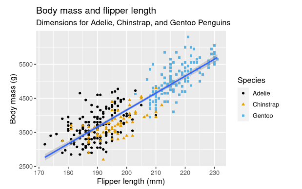 – Aesthetic attributes of a geometries (color, size, transparency, etc.) can be mapped to variables in the data or set by the user.