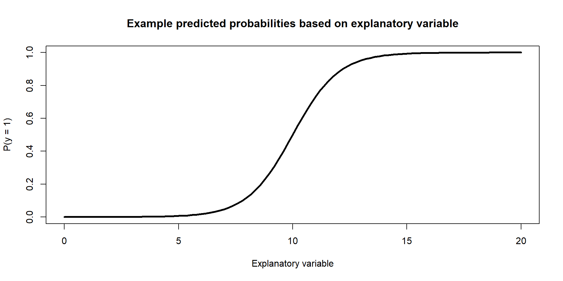 \[p = \frac{e^{\widehat{\beta_o} + \widehat{\beta_1}X1 + ...}}{1 + e^{\widehat{\beta_o} + \widehat{\beta_1}X1 + ...}}\]